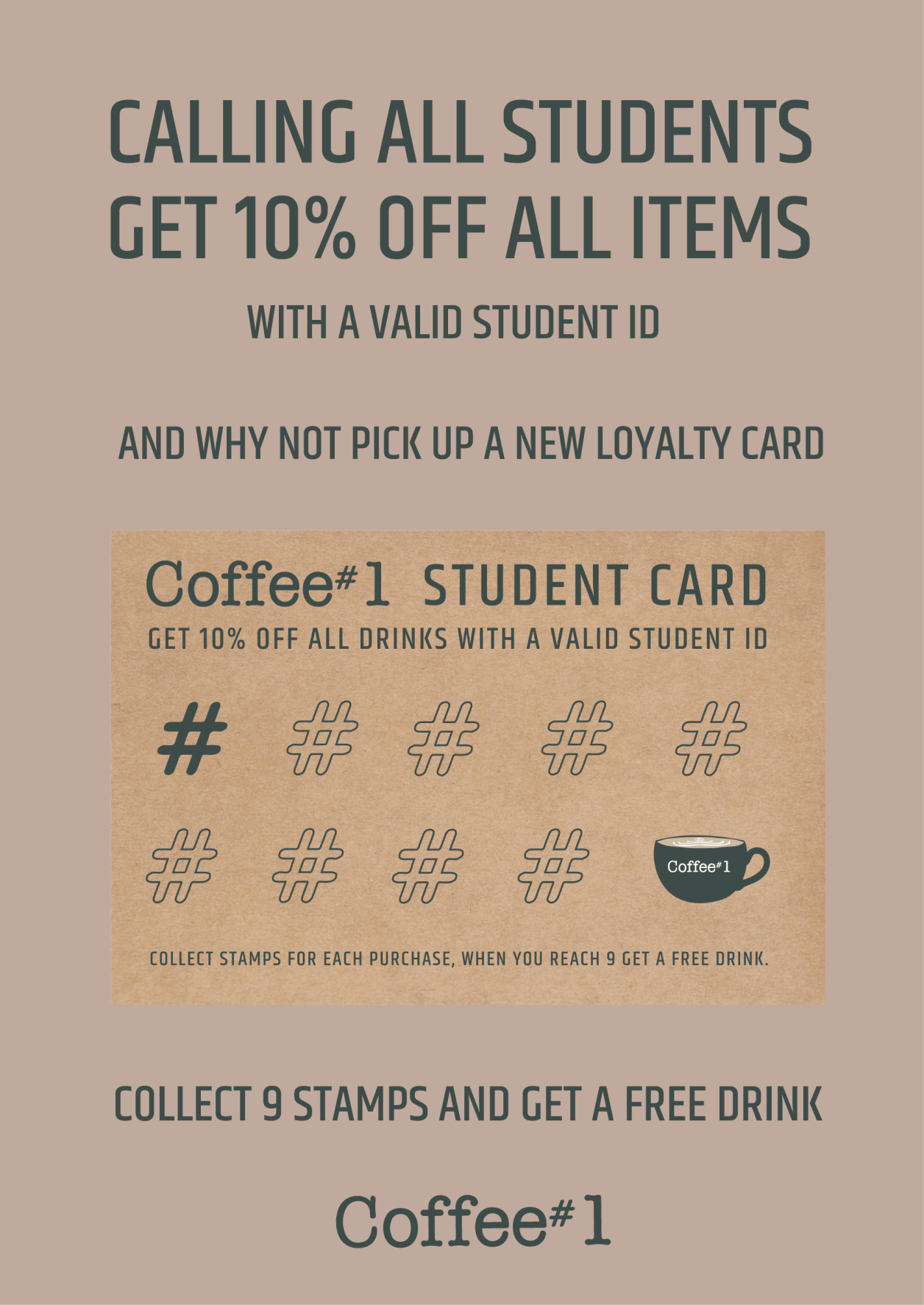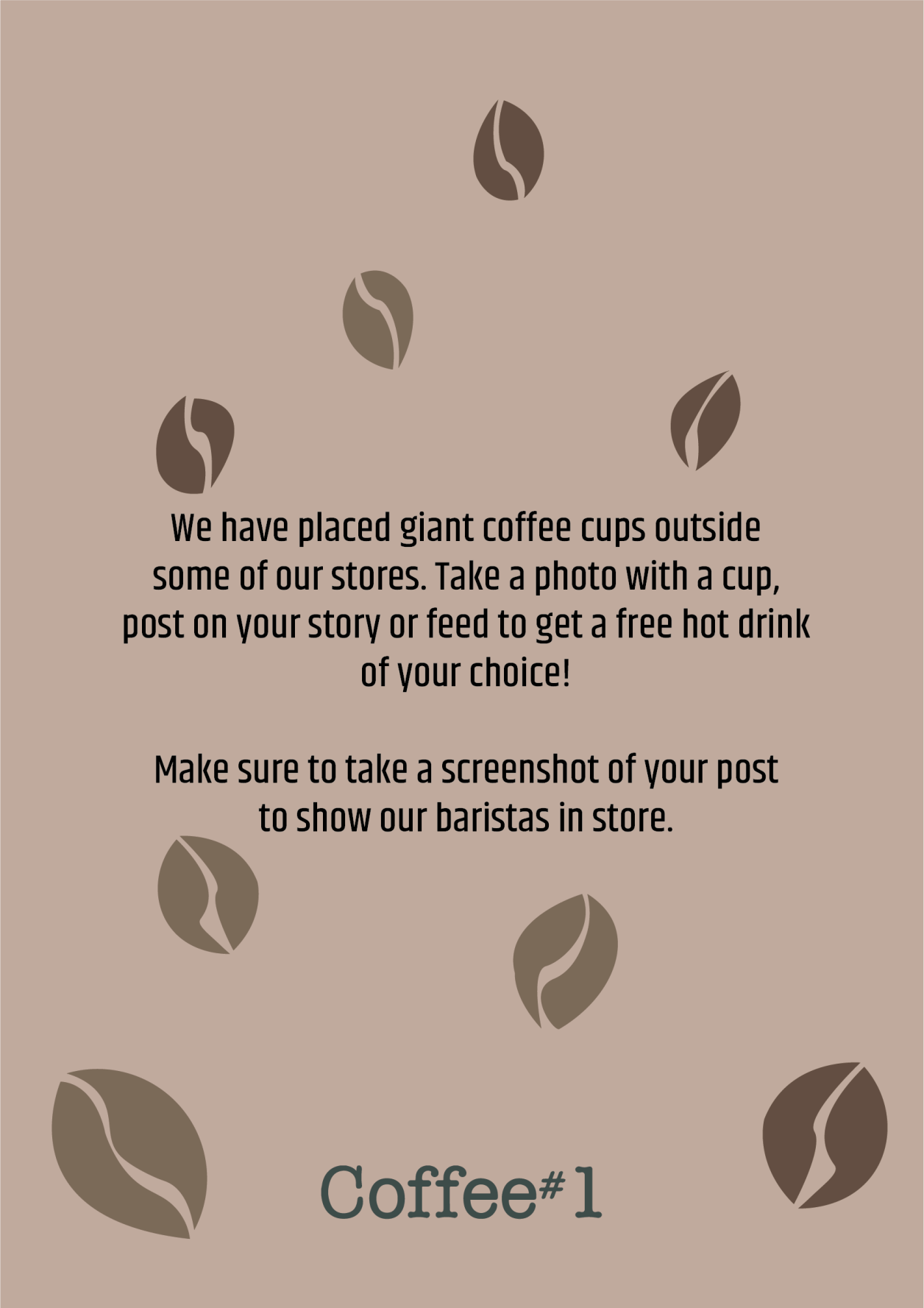 This brief was completed with my peer Bethany Davies. We decided to create an awareness campaign for coffee house Coffee #1 in the form of a brand refresh. We simplified their logo by taking away the image and leaving the existing text logo. The refresh colour palette was a deep green and soft taupe, which we saw on their modern website along with the font we used. We chose to use the same font and colours that feature on their website, as we wanted to make the brand feel cohesive across all brand elements. We decided to update their social media, design new merchandise along with loyalty cards and print adverts. Also writing a press release to spread awareness of the new look.